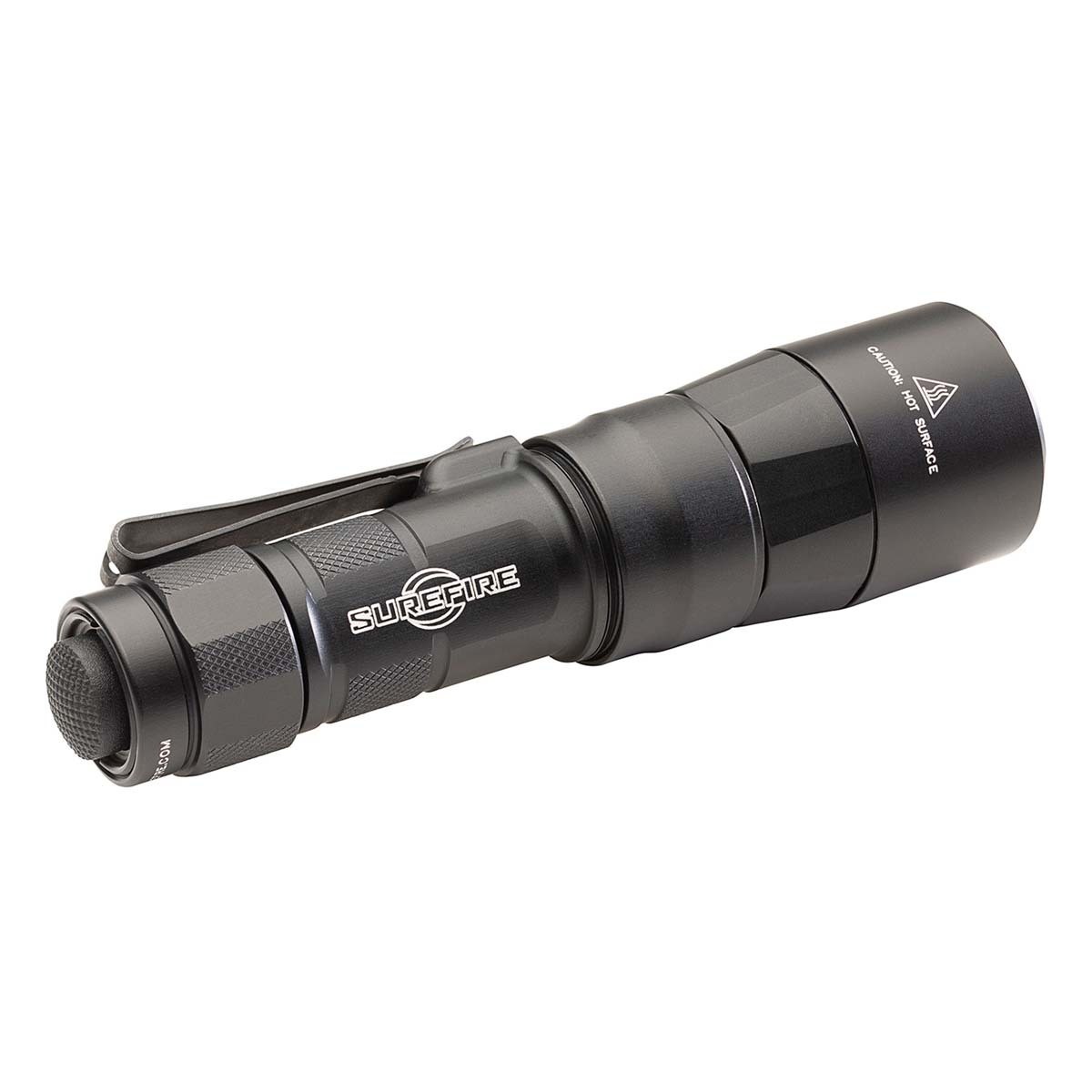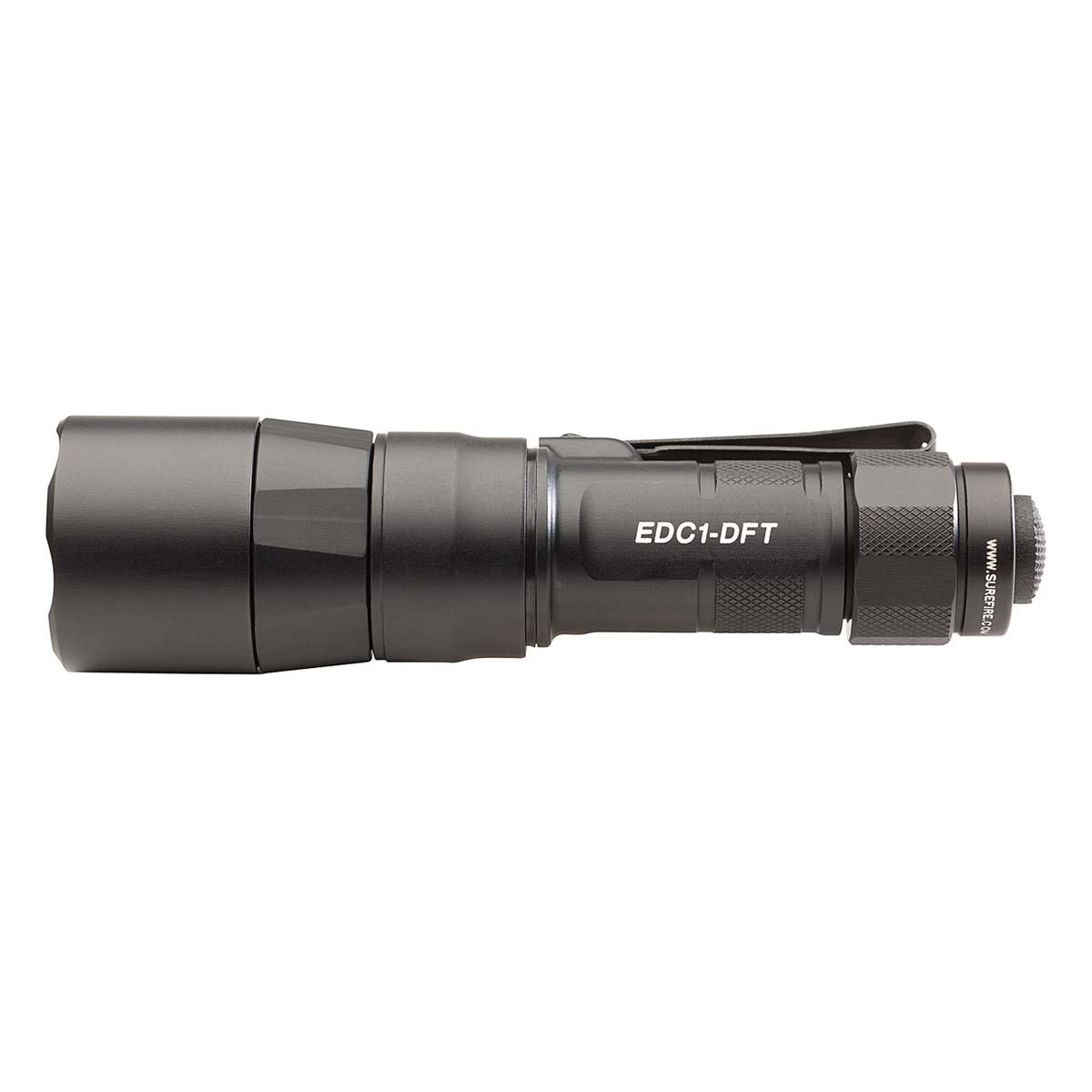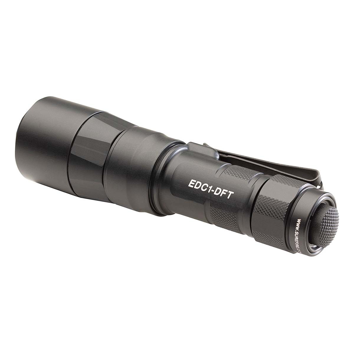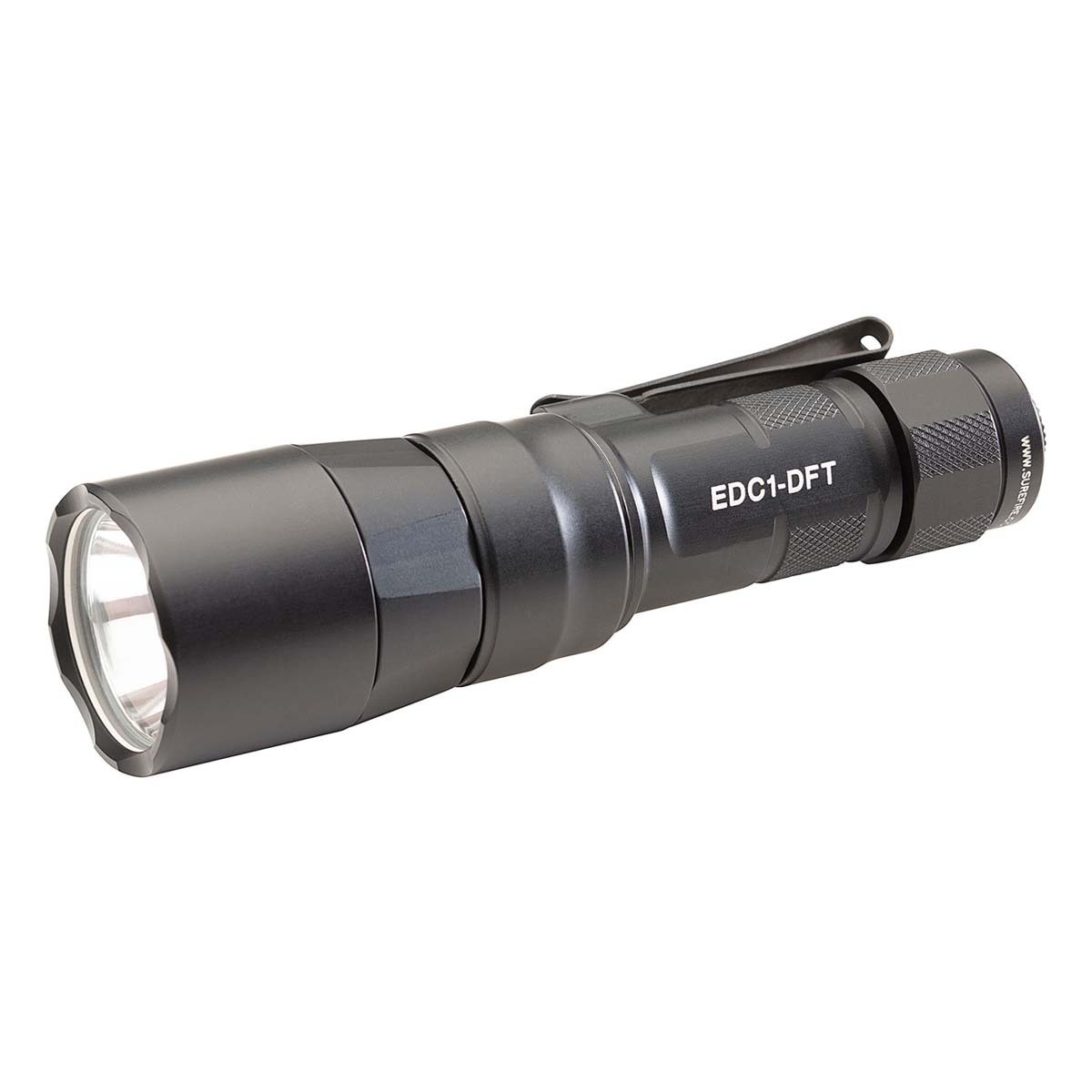 Turbocharge Your Low-Light Vision. SureFire’s Everyday Carry Series punches deep into darkness with the EDC1-DFT Turbo, a Dual Fuel, high-candela handheld flashlight that delivers impressive beam designed explicitly for long-distance illumination in a remarkably compact form factor. With a blinding, peak beam intensity of 95,000 candela using the included SF18350 rechargeable lithium-ion battery or 55,000 candela from a single 123A primary battery, the EDC1-DFT's Turbo Series reflector provides a concentrated, tightly focused beam pattern that allows you to see farther into the darkness and positively identify any potential threat. In addition, it offers tremendous versatility by providing ample spill light to help the user maintain situational awareness. Constructed of lightweight aerospace aluminum, Mil-Spec hard-anodized, and O-ring sealed to keep out the elements, the body and tailcap are also knurled for a secure grip. A sturdy, two-way clip offers the added flexibility of bezel-up or bevel-down carry. The EDC1-DFT delivers SureFire quality, performance, and dependability in an everyday carry flashlight that provides peace of mind by helping you see farther into the unknown.