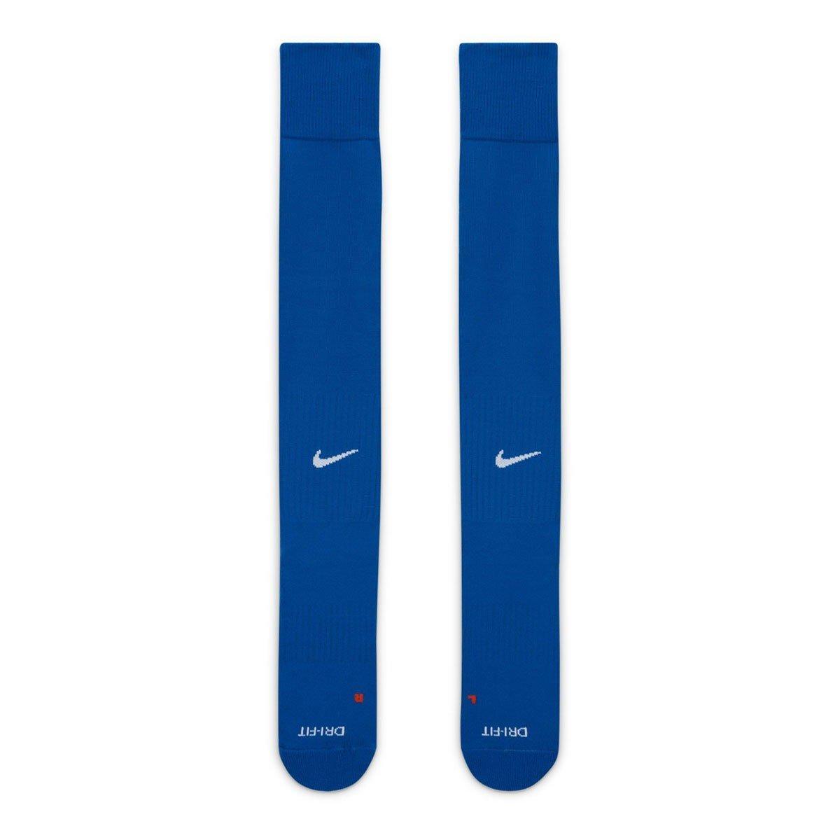 Experience unparalleled comfort and support with the Adult Nike Classic 2 Cushioned Knee High Soccer Socks. These socks are engineered with Dri-FIT technology, ensuring your feet stay dry and comfortable even during the most intense matches. The added cushioning reduces impact and provides extra protection for your feet. Their knee-high design offers extended coverage for enhanced stability and warmth. With Nike's signature swoosh logo, these socks not only deliver performance but also a classic, stylish look on the field.