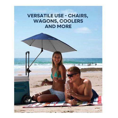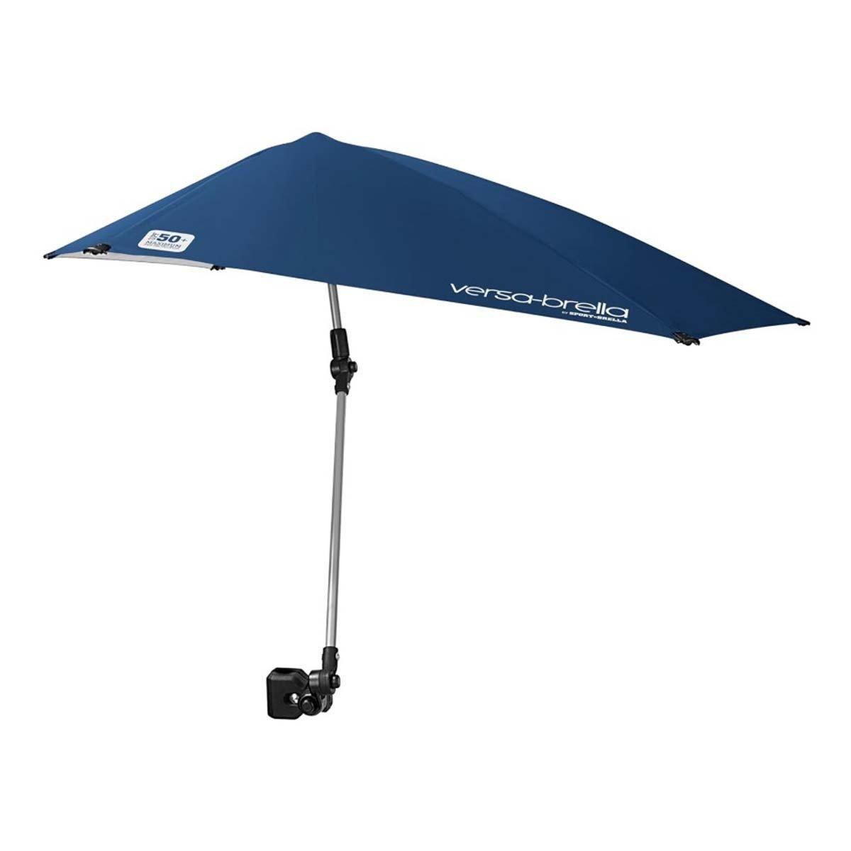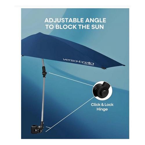 Introducing the Versa-Brella UPF 50+ Personal Sun Shade, your ultimate solution for sun protection during outdoor activities. Whether you're at the beach, watching a game, or camping, the Versa-Brella provides quick, hassle-free shade. Its heavy-duty clamp attaches easily to beach chairs, strollers, golf carts, and more, offering versatile use. The UPF 50+ fabric blocks 99.5% of harmful UVA and UVB rays, keeping your skin safe while you enjoy the outdoors. With 10 square feet of coverage, this umbrella ensures you and your loved ones stay shaded. The 4-way, 360-degree swivel and push-button hinges make it easy to adjust the umbrella's angle to block the sun at any time of day. Weighing only 1.8 pounds, the Versa-Brella folds to a compact size of 35.04 x 3.35 inches and comes with a carrying bag for easy transport. Plus, protective safety tips add an extra layer of security, making it a safer choice than traditional umbrellas. Backed by a 1-year limited manufacturer's warranty, the Versa-Brella is the perfect companion for sun protection wherever your adventures take you.