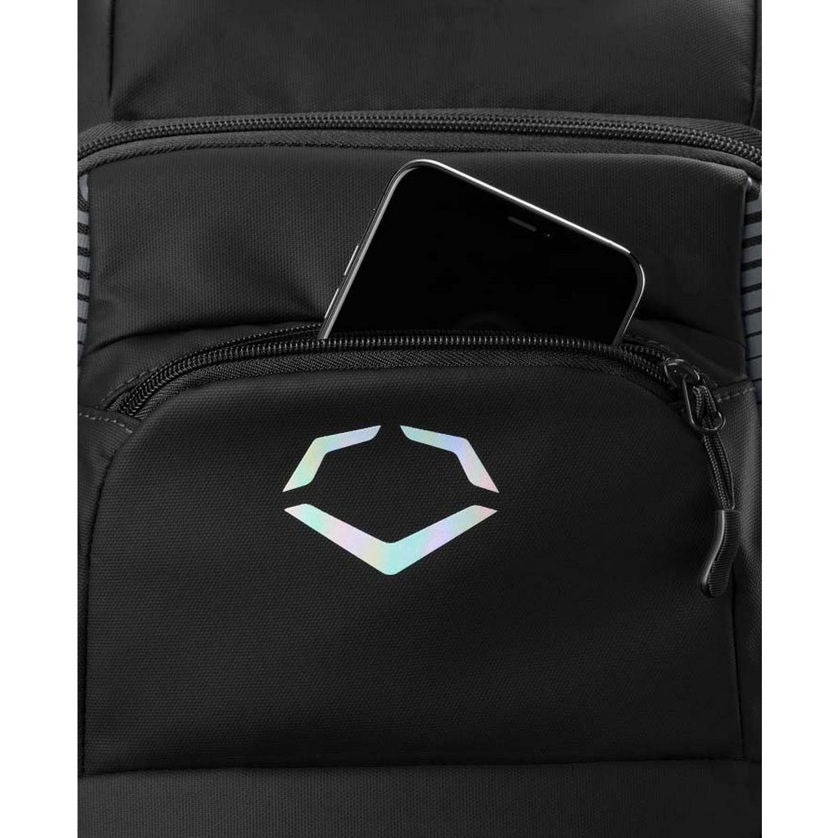 Carry all the equipment needed for practice or game day in the EvoShield Tone Set Backpack, a water resistant bag engineered to keep your gear organized in any elements. Stash your batting helmet, fielding glove and other gear in the large main compartment, then zip your phone in the fleece-lined valuables pocket when it’s time to get to work. Equipped with neoprene bat sleeves, this pack makes it easy to carry two bats to the cages or practice fields. Use the integrated fence hook to secure your bag in the dugout so you can easily access all your equipment on game day.