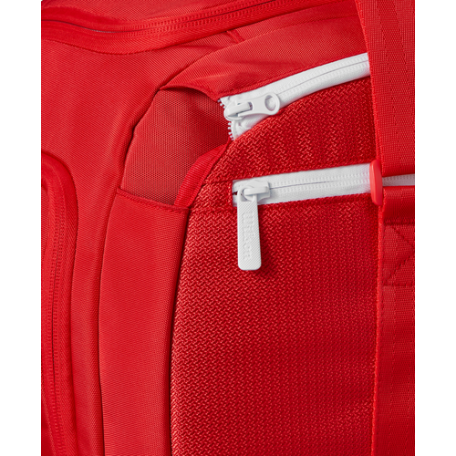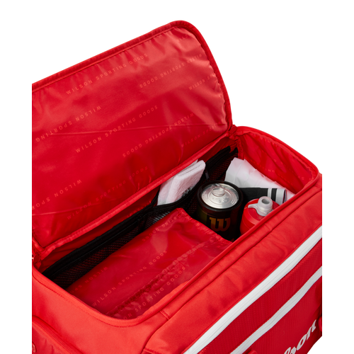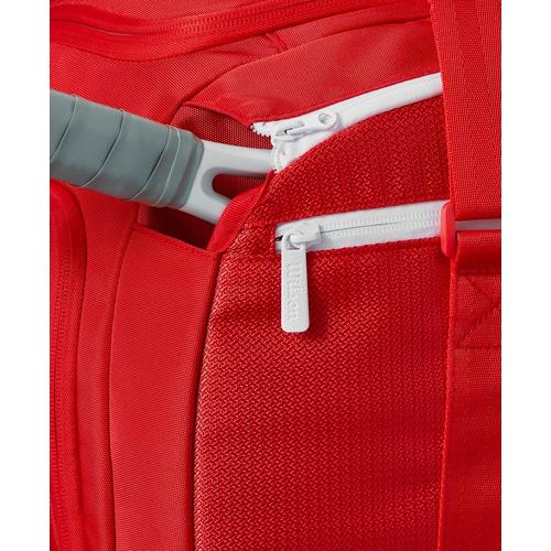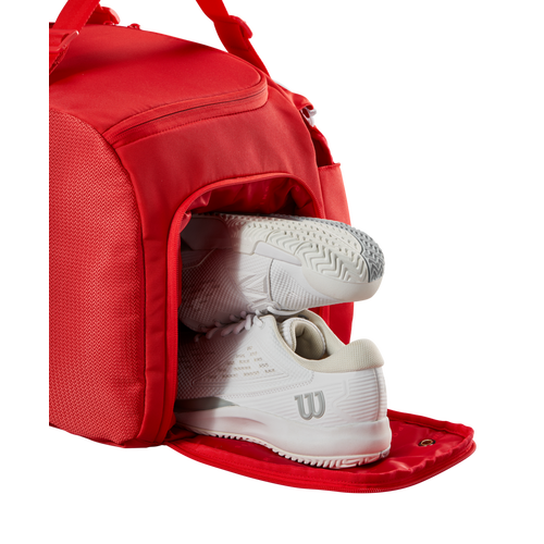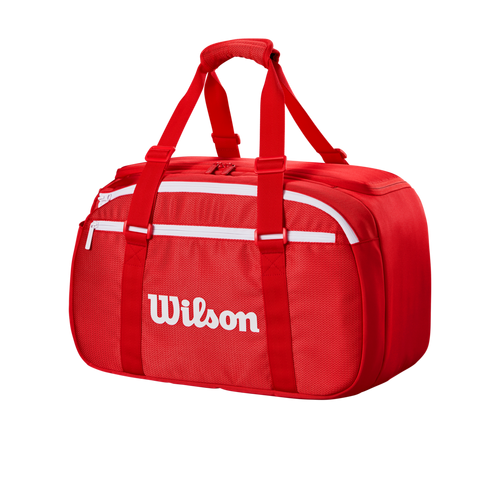 Made in majestic red, Wilson's most iconic color, the Super Tour Red Small Duffle is ideally suited for avid players who need extra carrying capacity for extra gear and shoes. A perfect tournament travel companion to one of the Super Tour Red racket bags, it's also a great alternative for practice sessions, when players prefer to travel light to the courts. In addition to the dedicated shoe compartment and side pocket for smaller items, the duffle has a new separate compartment designed for a tennis racket. Padded carry handles make it comfortable and easy to haul.