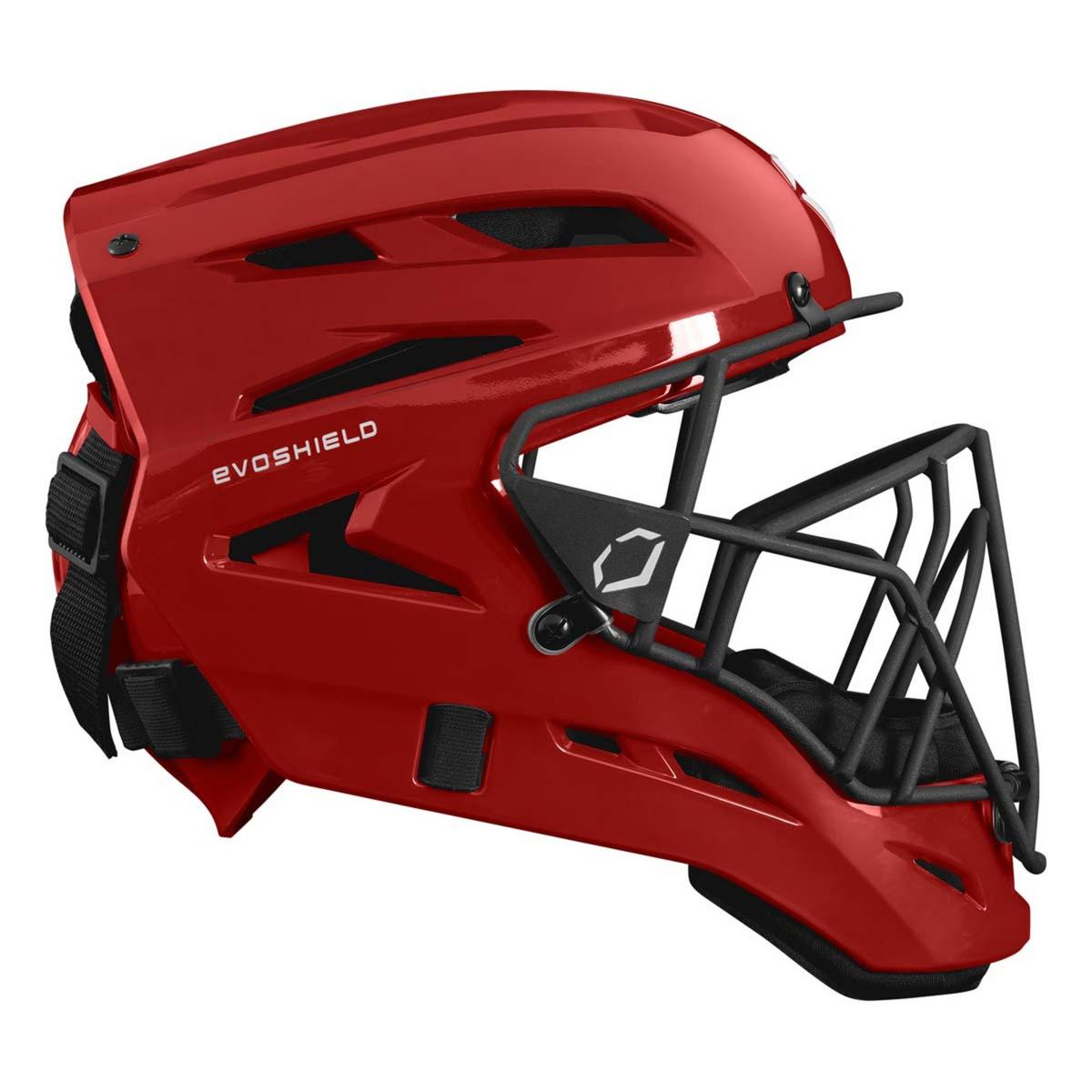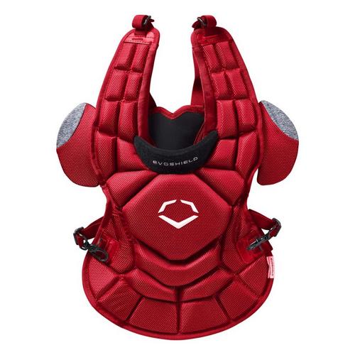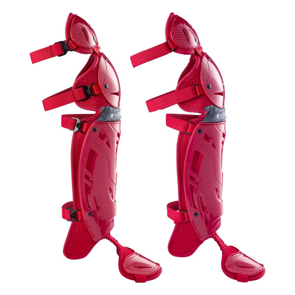The Evoshield SRZ-1 fastpitch catcher's set is a high-quality gear collection built for serious fastpitch players, available in a variety of colors so you can personalize your look behind the plate. Each set includes a helmet, chest protector, and leg guards, and is offered in both Intermediate and Adult sizes. The hockey-style softball catcher's helmet features a glossy finish and meets NOCSAE standards for safety. The fastpitch chest protector is designed to meet the commotio cordis standard for heart protection and includes a Velcro neck roll and three interchangeable patches, giving players a chance to add their own flair. The traditional-style softball leg guards provide full coverage, including protection for the tops of the feet.