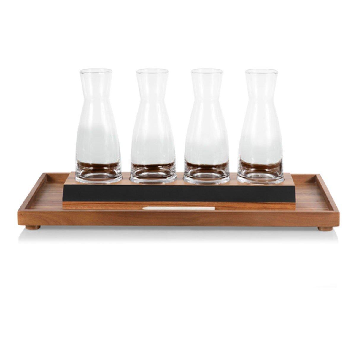 Bring the wine tasting experience home with the Cava Carafe Wine Tasting Kit. Brunch, pre-dinner drinks, cocktail parties, and more just got a whole lot more fun with this tasting set, ideal for wines, mimosas, and cocktails at home or al fresco! With 4 16-oz carafes, a classic Acacia wood base, and a chalkboard for labeling, you’re sure to be the belle of the vineyard. No Bachelorette, wedding party, Sunday brunch, or at-home tasting is complete without this carafe set. This is the perfect gift for the budding sommelier in your life - especially if that friendly wine enthusiast is YOU!