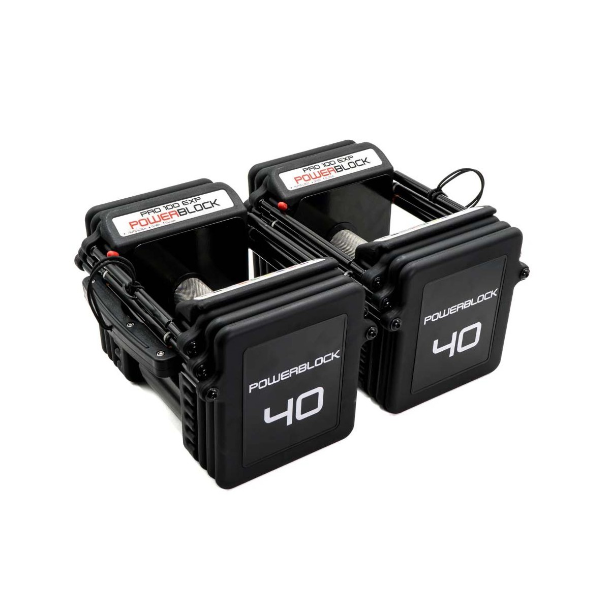 The PowerBlock Pro 100 EXP adjustable dumbbell set starts with stage 1 at 40 pounds with the option to add 3 additional expansion kits to get to 60, 80, or 100 pounds. Scale up or down as needed to customize your workouts.
