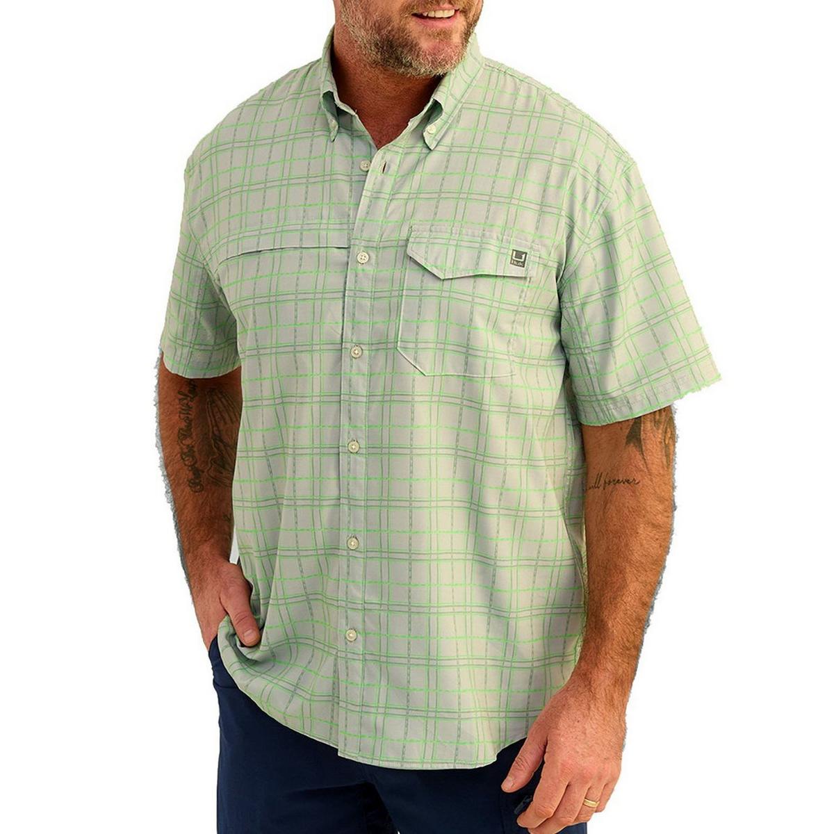 The Huk Tide Point Short Sleeve provides superior performance, designed for comfort and durability both on and off the water. This product offers 30+ UPF protection, mechanical stretch and a quick-drying fabric with moisture transport capability. It also features a mesh-backed chest pocket, perforated back, interior eyewear wipe and button roll up sleeves. Get everything you need in one garment.