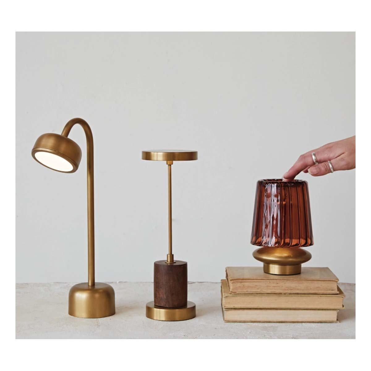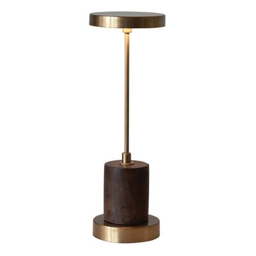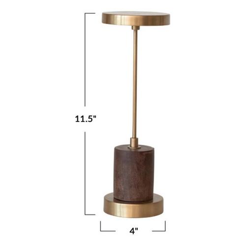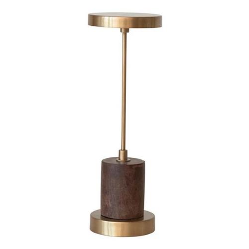 Creative Co-Op Metal & Mango Wood LED Table Lamp w/ Touch Sensor, Antique Brass Finish