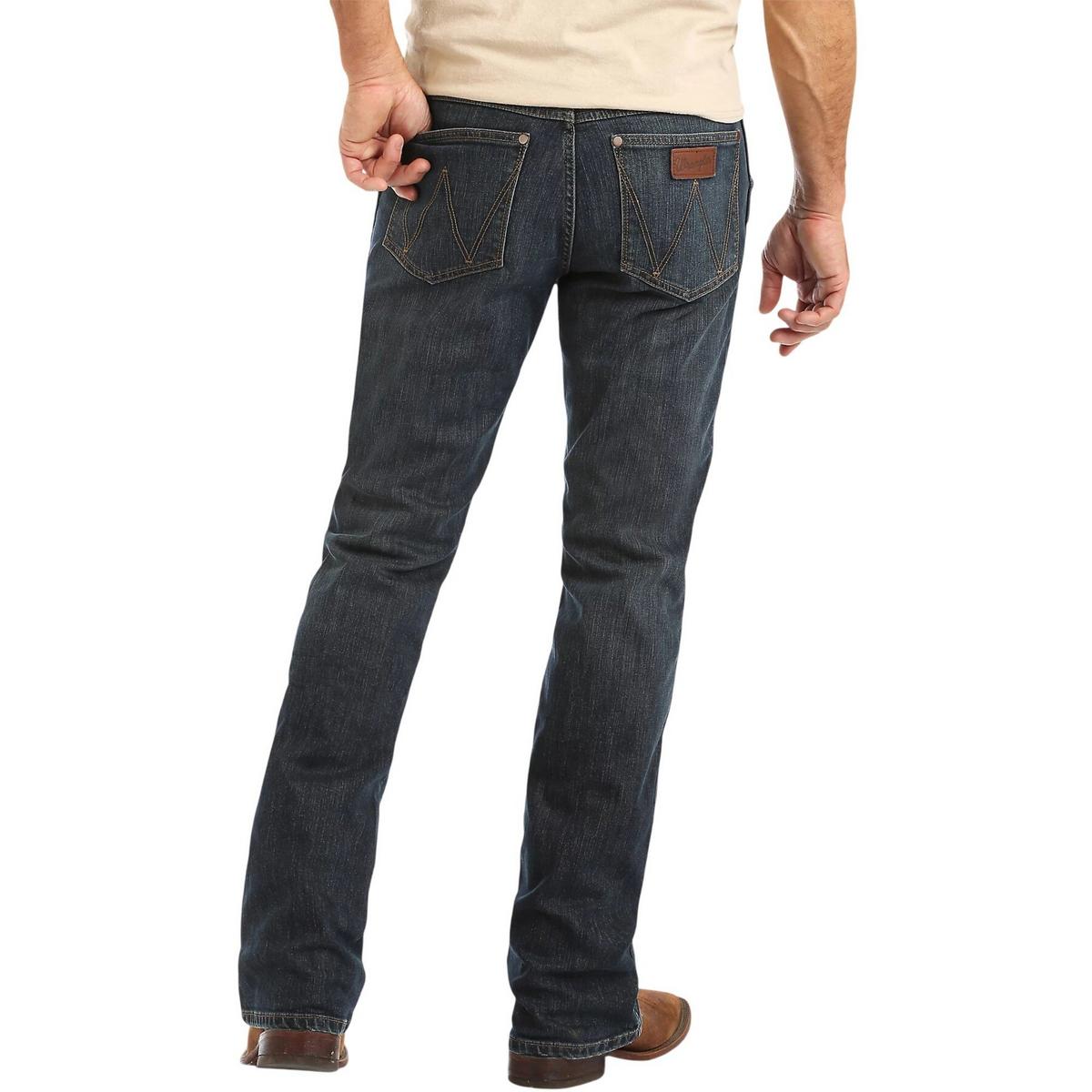 For a comfortable yet casual look, wear the Men's Wrangler Retro Relaxed Fit Bootcut Jeans. These jeans are perfect to pair with a favorite graphic t-shirt, hoodie, or flannel whether you're heading to a concert or going out to dinner.