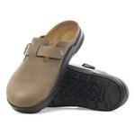 The BIRKENSTOCK Boston is a veritable classic that can easily be worn all year round. It has a legendary status thanks to its sophisticated, individually adjustable design. The sporty Adventure Crosstown version is designed for BIRKENSTOCK fans who are active and looking for an experience. The polyurethane sole is affixed to the footbed in two layers and therefore offers maximum flexibility, grip, and durability. The upper is made from extra thick, oiled nubuck leather with an open-selvage finish.