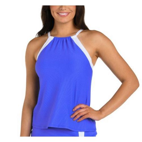 This tankini top features small-scale geometric texture that adds dimension to the fabric and color block design. Its high-neck, removable cups, and underwire will have you feeling comfortable and confident. Top sold separately.