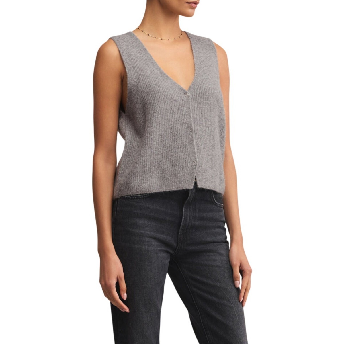 Designed in our soft Cozy Summer yarns, this sleeveless v-neck brings an airy weight and textured rib detailing. A standout piece that works solo in warm weather or layered as temps cool.