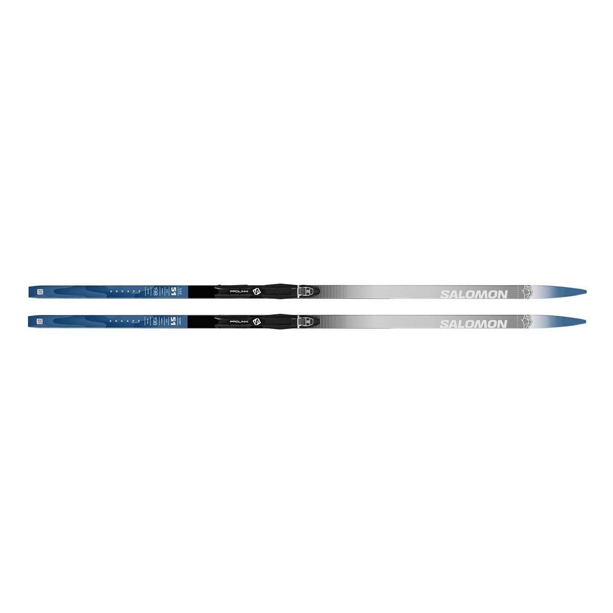 Designed for recreational skiers, Salomon's ESCAPE PLUS waxless ski set offers maximum control and ease. Its low heel-toe camber and G2 Synchro grip give it a secure waxless kick. The ski is delivered pre-mounted with the safe Prolink Access Cl binding.
