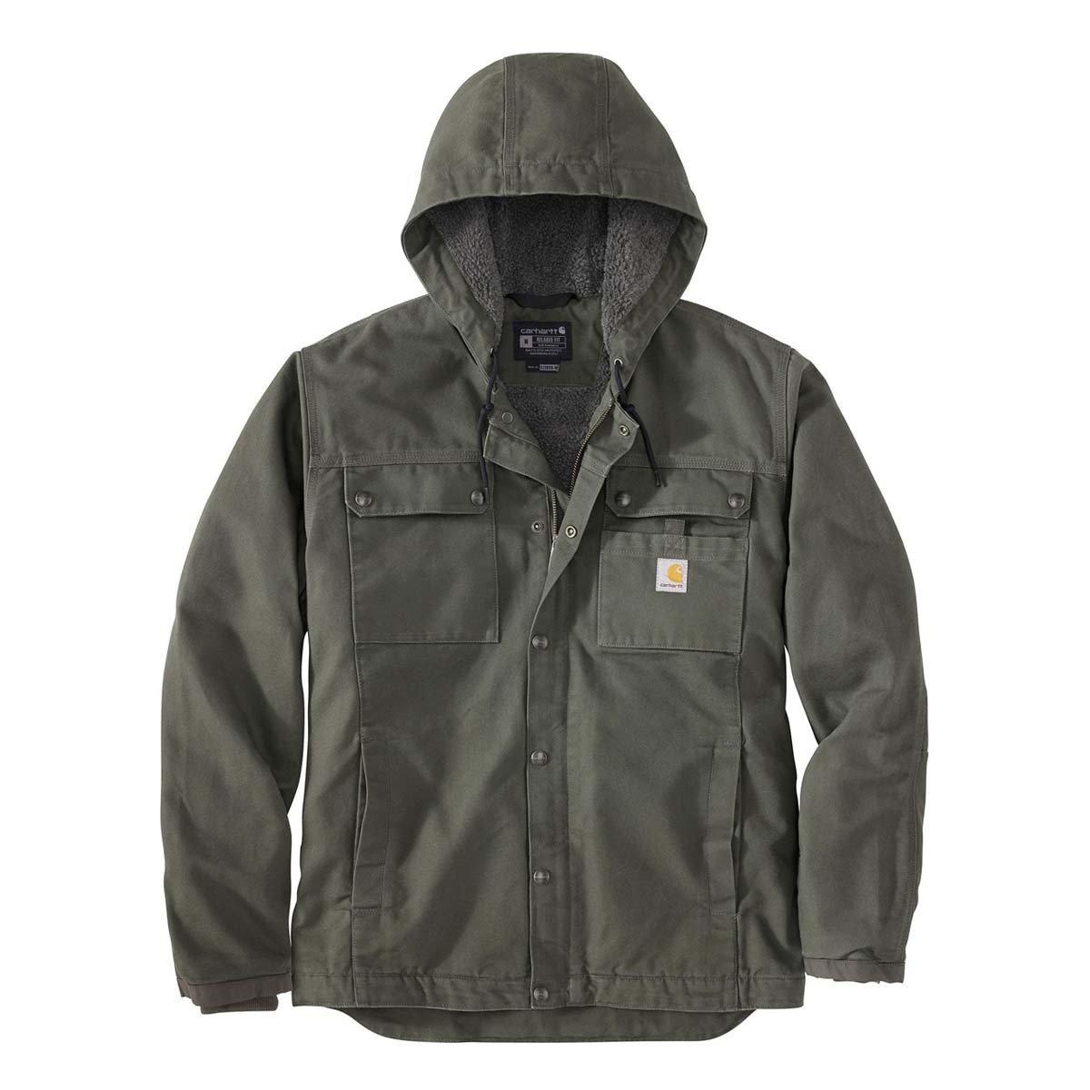 The Carhartt Washed Bartlett Jacket is made out of durable cotton duck that features a layer of soft sherpa-lined fleece through the body and hood. The arm sleeves are layered with warm quilted nylon. Plus, you will have plenty of pocket options to ensure you have everything you need. This Carhartt jacket is made for midrange to moderately cold conditions so whether you need a jacket for work or running errands this is a great option. Previously known as the Washed Duck Bartlett Jacket.