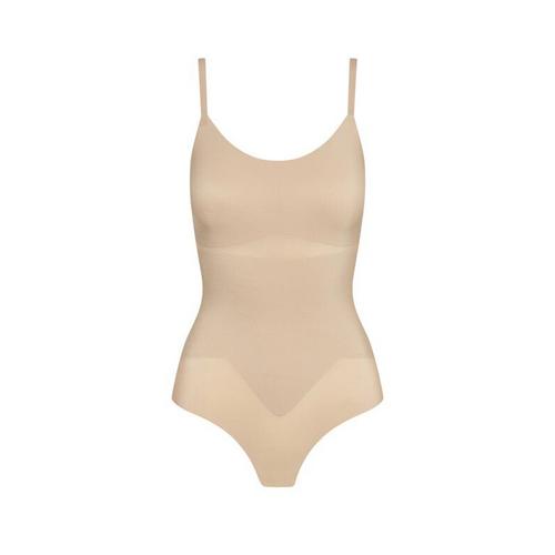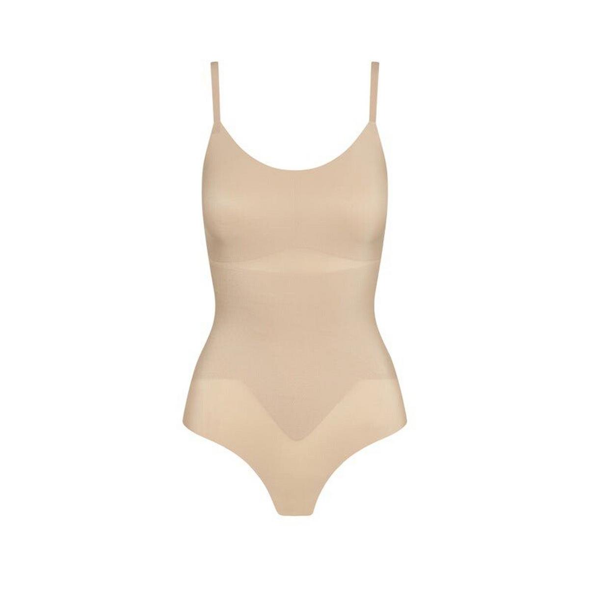 Commando's Zone Smoothing Bodysuit features our signature raw-cut hem and thong bottom and adjustable straps for a customized fit. This smoothing bodysuit features all around medium compression plus extra-targeted smoothing properties through zoned smoothing panels for a seamless and smooth undergarment effect.