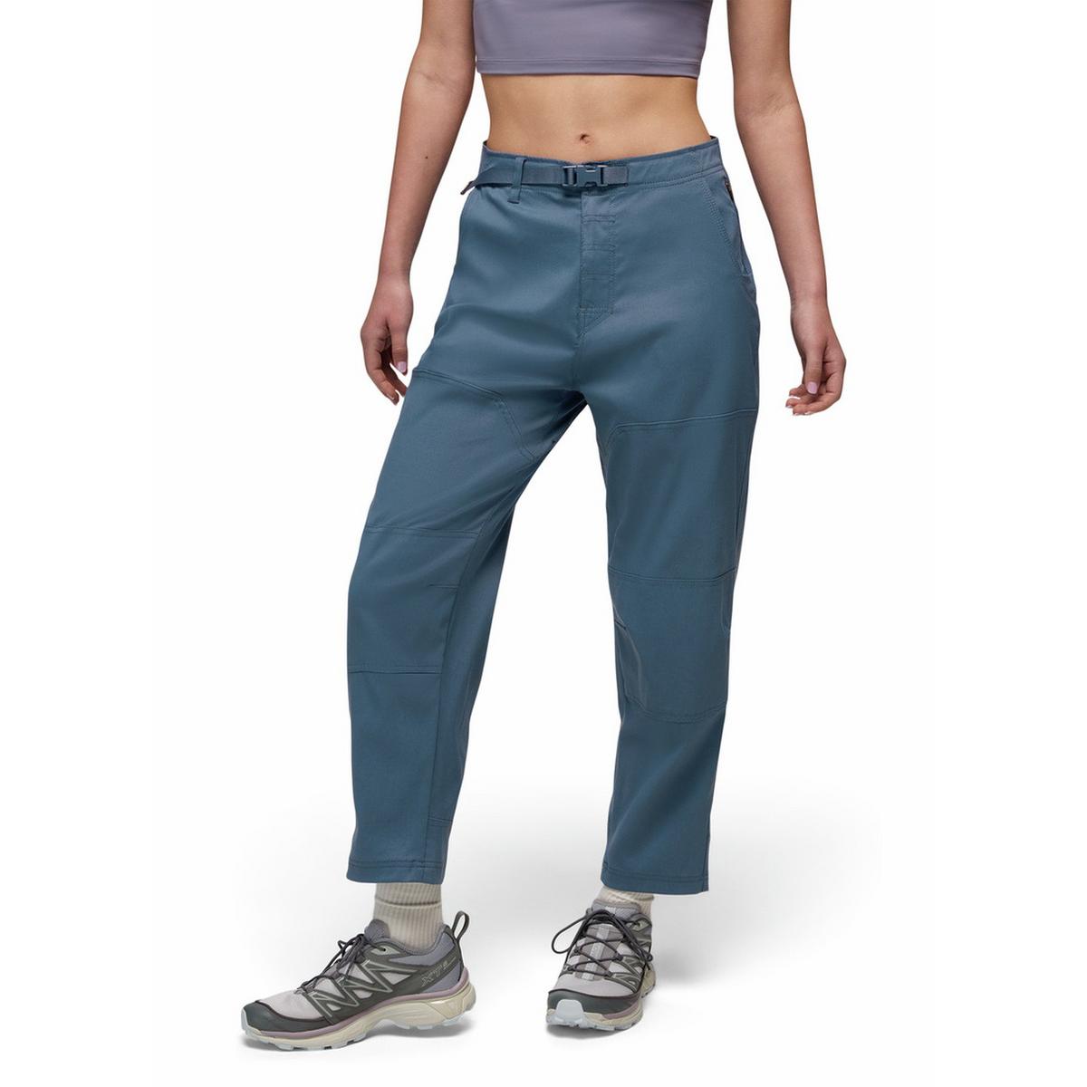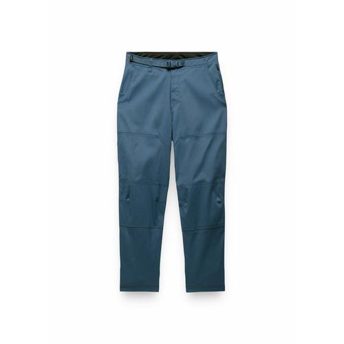 bluesign ® approved fabric • Durable recycled nylon fabric with stretch • PFC free DWR water resistance • Webbing belt closure • Zipper fly • 2 hand pockets • Security zipper pocket on left side • 2 back patch pockets • Elastic utility loop at back yoke • Gusset construction with ventilation • Double layer of fabric at knee • Double layer of fabric at heel • prAna logo label at end of webbing belt • Size: S / Inseam: 26 1/2' • Rise: 11 1/2' • High Rise, Relaxed