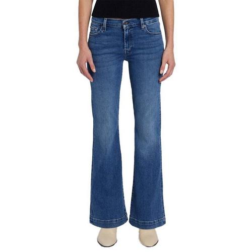Your favorite Dojo, featuring a mid-rise, a wide leg and a subtle flare. Crafted in our premium signature denim, this pair comes in an easy, medium blue wash complete with our signature 7 embroidered back pockets.