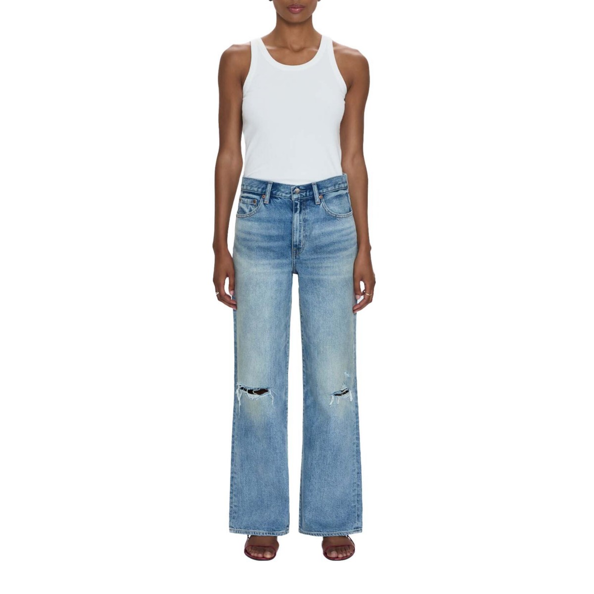 Effortless Cool meets Trend-Forward Detail. Embrace laid-back style with these slouchy, everyday jeans, your new go-to for comfort and a modern silhouette. Designed to sit comfortably low on the hips, they offer a relaxed fit that captures the season's must-have look. Crafted from rigid, non-stretch denim for authentic structure, the subtle distressing adds a touch of lived-in character and a hint of edge. Perfect for spring layering and casual styling, these jeans pair seamlessly with your favorite tees and sneakers for an effortlessly chic vibe.