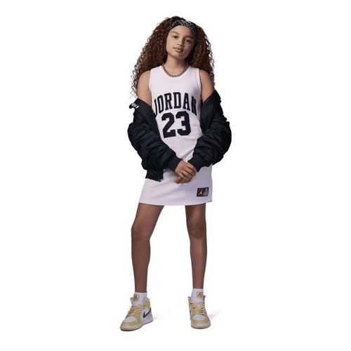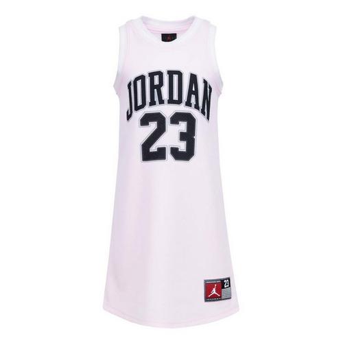 This dress, designed in the style of the jersey Michael Jordan wore during his storied basketball career, is made of breathable mesh fabric. Additionally, it's easy to layer over bike shorts or leggings for full coverage thanks to the roomy A-line construction.