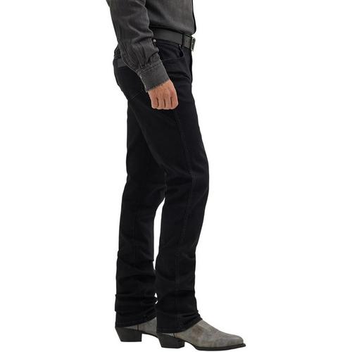 Wrangler Retro slim fit jeans nod to our history while introducing fits and washes suited for the modern cowboy. Designed with a closer fit and leg opening that still falls comfortably over boots, our men's Wrangler straight leg slim fit jeans add extra style to the classic look you love. These jeans sit low on the waist and make it easy to show off your favorite belt buckle. That design detail is our Western heritage showing through, something that happens often with the Wrangler® Retro® collection.