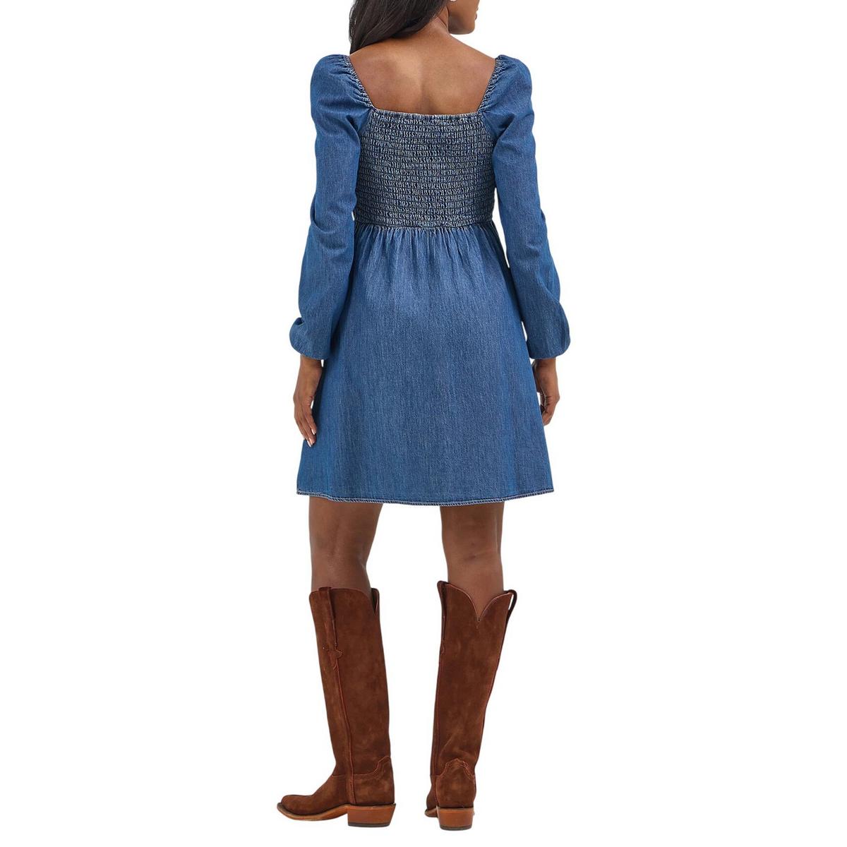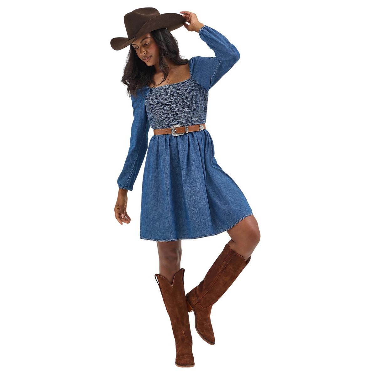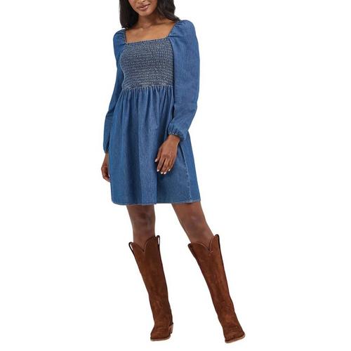 Women's Wrangler Smocked Bodice Long Sleeve Square Neck Dress