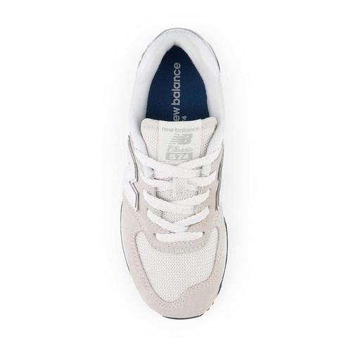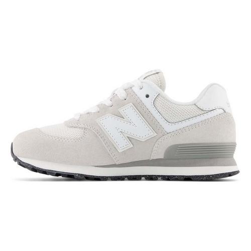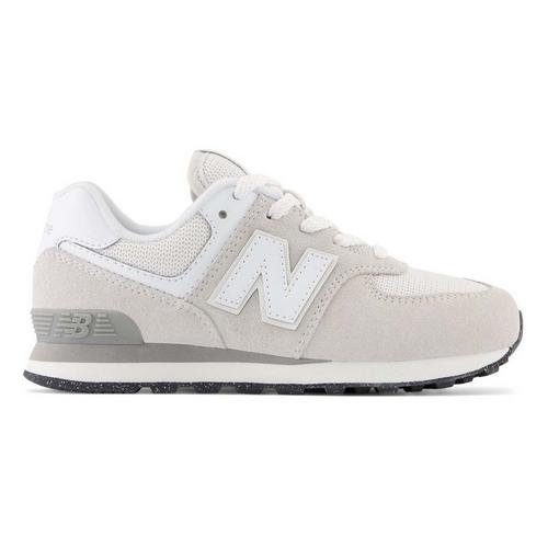 The Little Kids' New Balance 574 Sneakers combine retro style with modern comfort for all-day play. Featuring a durable upper made from leather, suede, and mesh, these shoes offer breathability and support. Lightweight EVA foam cushioning in the midsole and heel provides soft, responsive comfort with every step. The adjustable lace closure ensures a secure, customized fit. Finished with a grippy rubber outsole, these sneakers are perfect for active little feet.