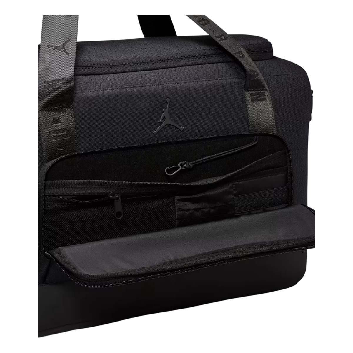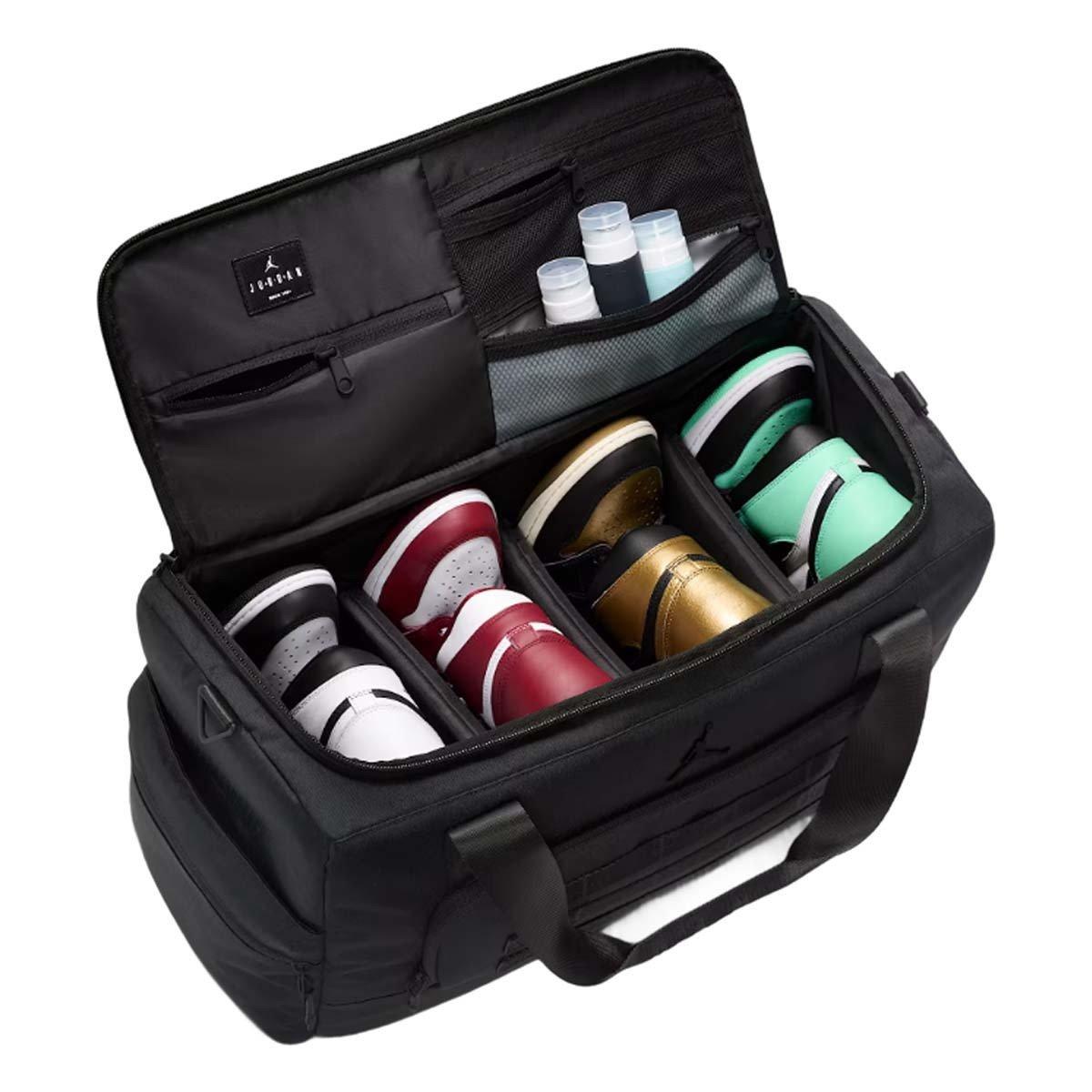 This duffel is the ultimate bag for any sneakerhead. It's made of CORDURA® fabric, which is resistant to abrasions, tears, and scuffs, with a water-repellent finish to help keep your belongings safe and dry. Organizational pockets inside the front compartment and top flap closure help secure smaller items and toiletries. The zippered main compartment is spacious, and has adjustable, removable padded dividers to help keep your sneakers protected during your travels. A vented packing cube with zip around closure and a handle is included for when you want to bring just one extra pair of kicks, and the handles and removable strap provide versatile carry and wear options.