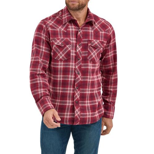 Men's Wrangler Retro Flannel Western Snap Plaid Long Sleeve Button Up Shirt