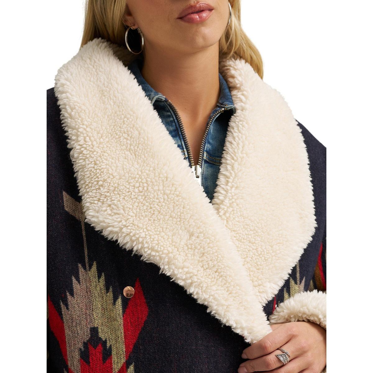 Cozy up in true cowgirl fashion with this Wrangler® x Lainey Wilson Jacquard Coat. Whether you’re at home on the ranch or out on the road, this jacket will warm you up with its cozy sherpa lining across the collar, cuffs, and trim along the back. It features a longline silhouette, a double-breasted placket with shiny copper hardware, and a Western-inspired jacquard design. It comes with dropped shoulders and an oversized fit that’s perfect for layering over anything and everything in your closet. You’ll also find an inner woven label with Lainey’s signature, nodding to just how hands-on she was in the creation of each collection piece.