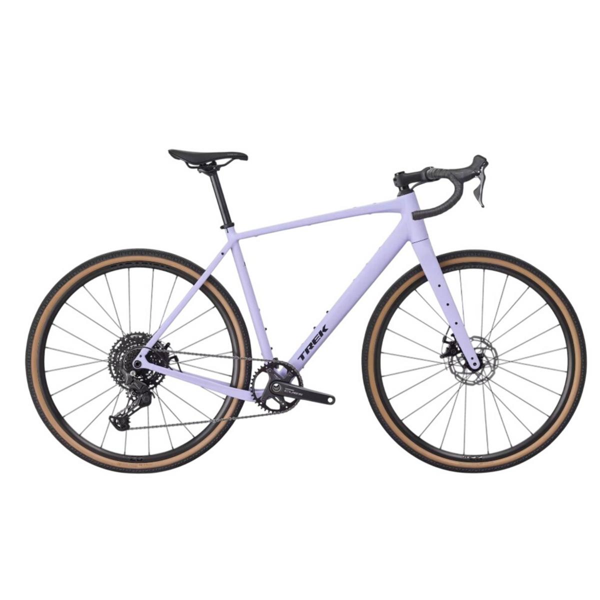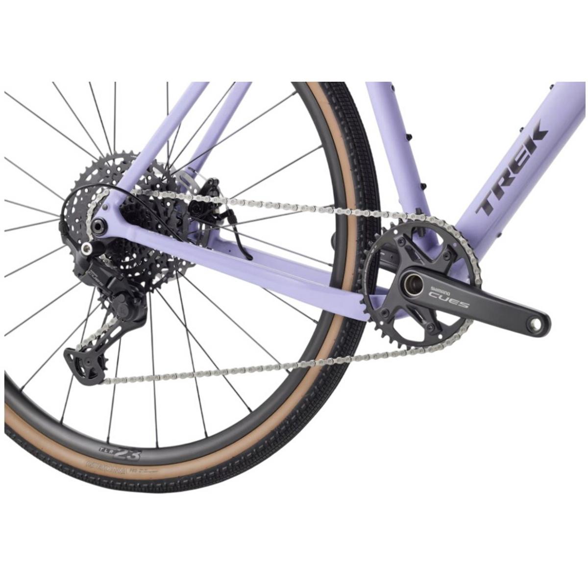 A 300 Series Alpha Aluminum frame with a full carbon fork, with clearance for up to 50mm tires. 10-speed Shimano CUES U6000 shifting, mechanical disc brakes, Bontrager Paradigm wheels with Bontrager Girona Pro Tubeless Ready tires, plus mounts for loading up with bags, racks, and gear.