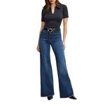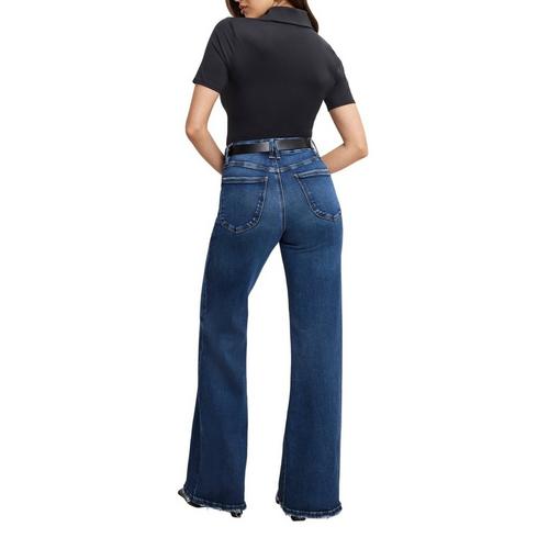The ultimate waist-cinching style. A form-hugging fit with wide legs, a floor-skimming silhouette and a flattering high-rise waist for a defined hourglass shape. Made from our super-stretchy SoftTech Denim, aka the world's softest, lightest jeans ever.