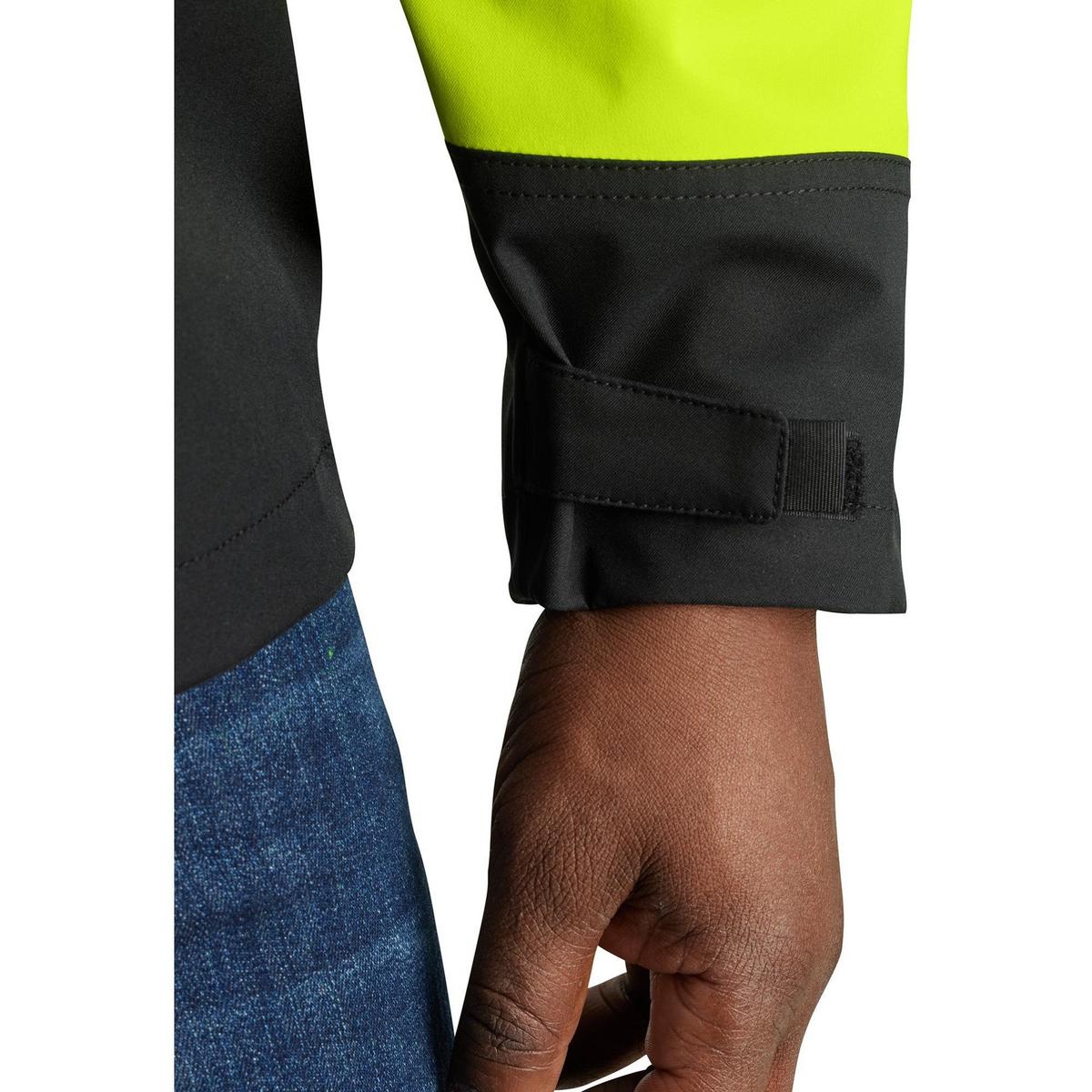 Stay dry. Be seen. Get the job done through wet weather in this men's Class 3 high-visibility rain jacket. Waterproof, breathable fabric and fully-taped seams seal out rain and keep you comfortable while you work and move. Pockets inside and out keep workday essentials dry and easy to reach. Reflective tape boost visibility.