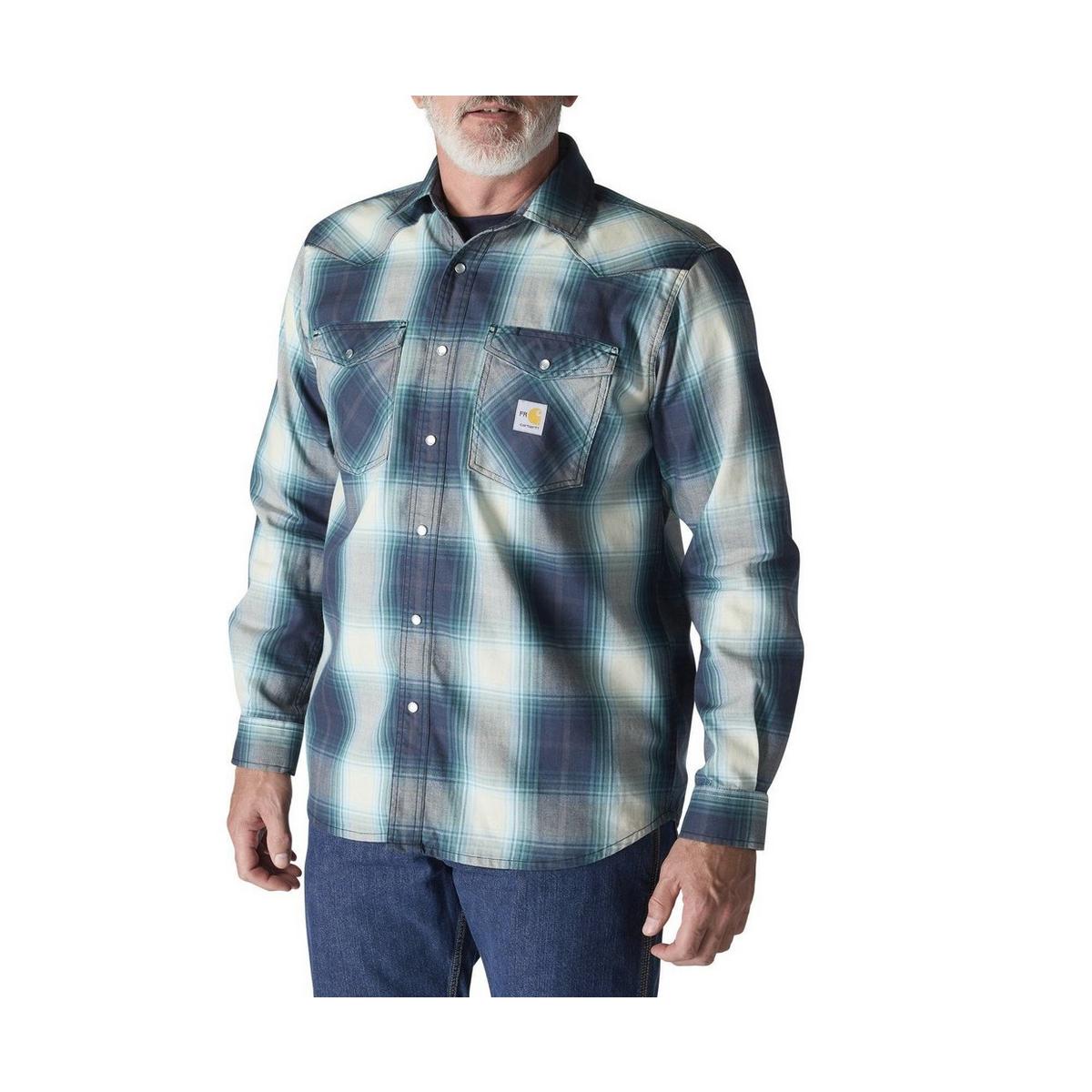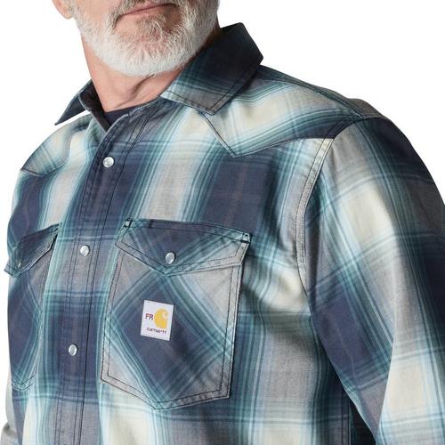 Men's Carhartt Montana Relaxed Fit FR Midweight Twill Snap Front Plaid Long Sleeve Button Up Shirt