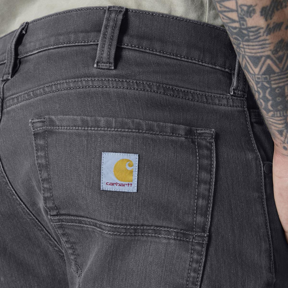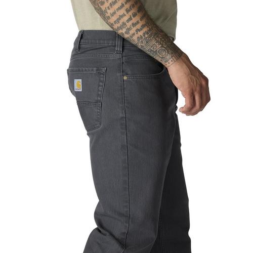Classic five-pocket design, proven Carhartt durability, and straight leg opening. These men's jeans are built with Rugged Flex® stretch technology so you can squat, kneel, and bend with ease. They are garment-dyed for a worn-in look from first wear with a loose fit for a generous cut through the seat and thigh.
