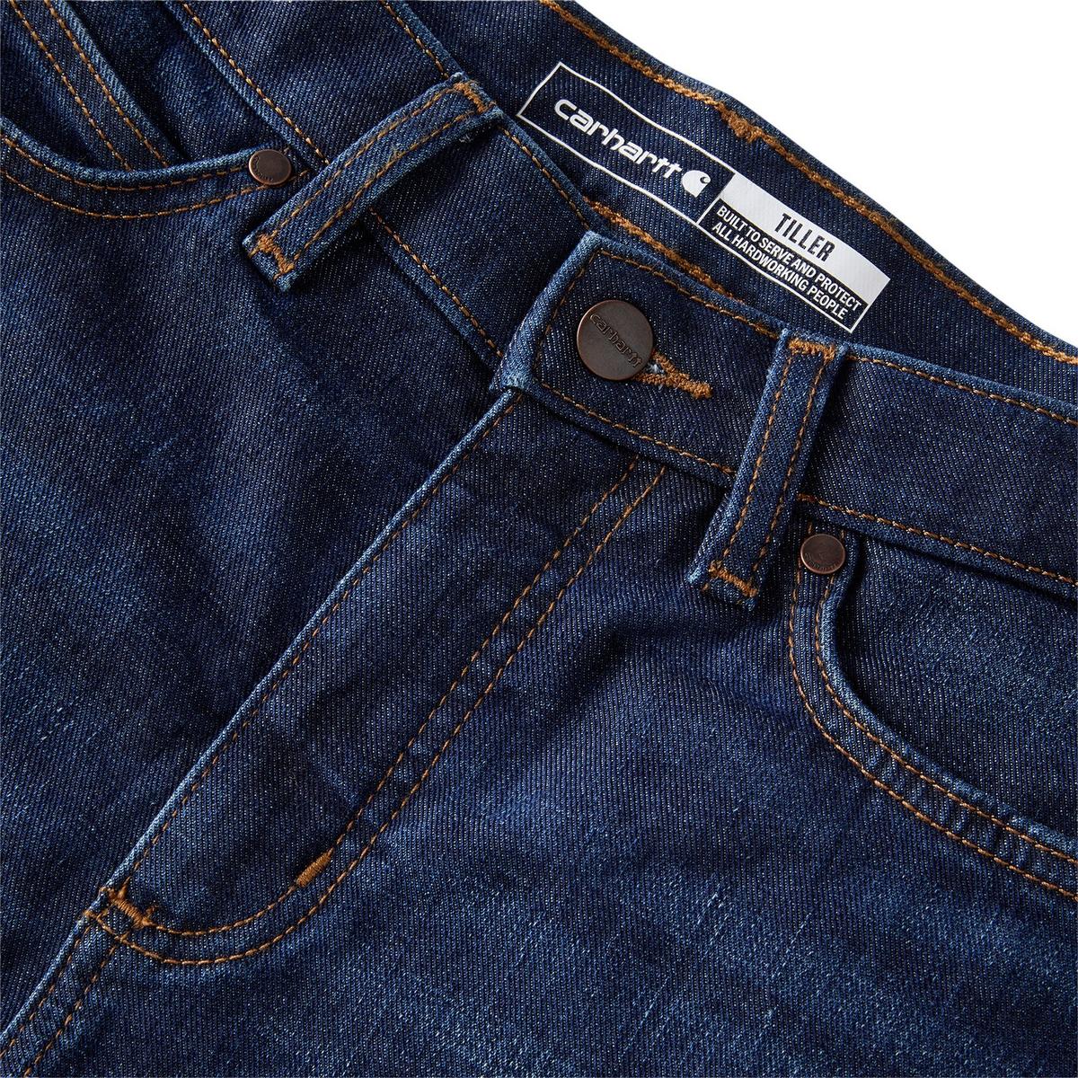 Meet the Tiller Jean. Its durable stretch denim was made to move, bend and bounce right back, so you work all day without your jeans quitting on you. Designed with a high-rise waist and smoothing front pocket construction, you can stretch, reach, squat, and move however you need while feeling comfortable and secure. Finished with a bootcut inspired by real working women in the field, the bottom fits over your boots without extra flare or bagginess for extra safety.