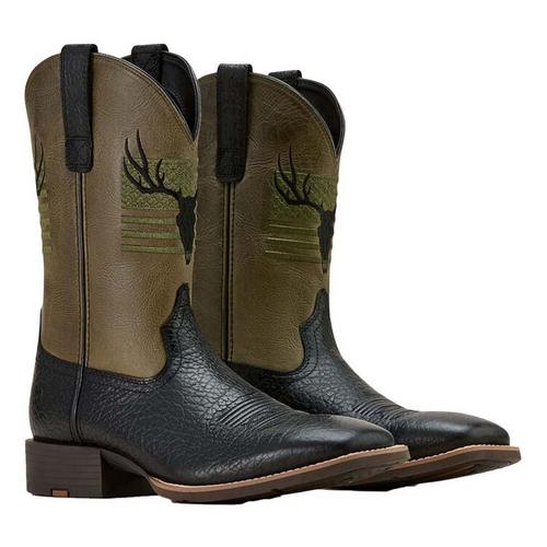 Outdoorsmen, this one's for you. Our Sport Antlers boot is a tribute to wildlife and American spirit. Featuring deer-skull and stars-and-stripes embroidery, it's a comfortable, durable, everyday go-to.