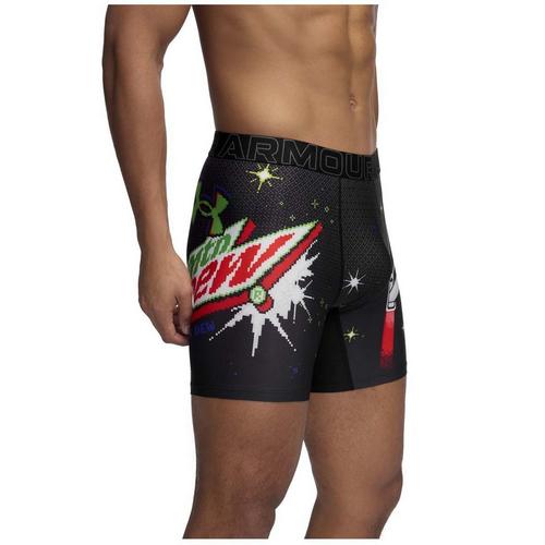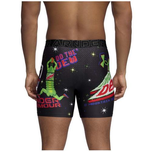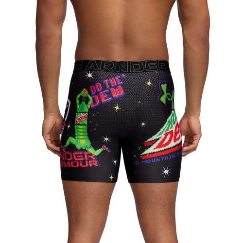 Men's Under Armour Performance Tech Mesh Mountain Dew Printed 6" Boxer Briefs