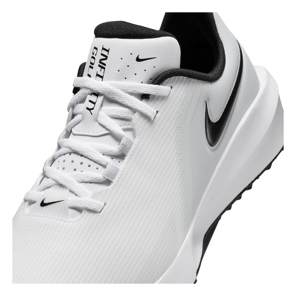 The Adult Nike Infinity G '24 Spikeless Golf Shoes are designed to elevate your game in any weather. Featuring a twisted waffle-inspired traction pattern with wet traction rubber, these golf shoes offer exceptional grip in rough conditions and rainy weather. Lightweight foam in the midsole ensures stable, responsive comfort, while the feathery stretch skin upper and internal heel counter provides water resistance and added support. With a plush sockliner and padded collar, the Nike Infinity G '24 Spikeless Golf Shoes deliver unparalleled comfort around the ankle for those long days on the course.