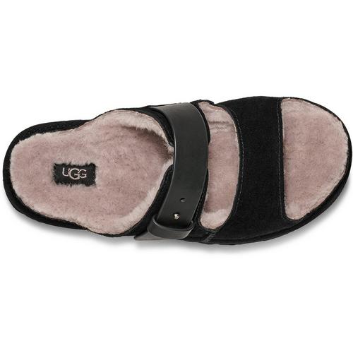 The Women’s UGG Greenport Strap Slide Slippers bring signature UGG® comfort to warm-weather days with an easy indoor–outdoor design. Featuring a soft suede dual-strap upper with adjustable buckle detailing, these slides deliver a breezy fit while maintaining the plush feel you expect from UGG®. The 10mm sheepskin lining and insole provide natural moisture-wicking comfort, and the lightweight sugarcane EVA midsole and outsole offer cushioned support whether you're relaxing at home or stepping outside.