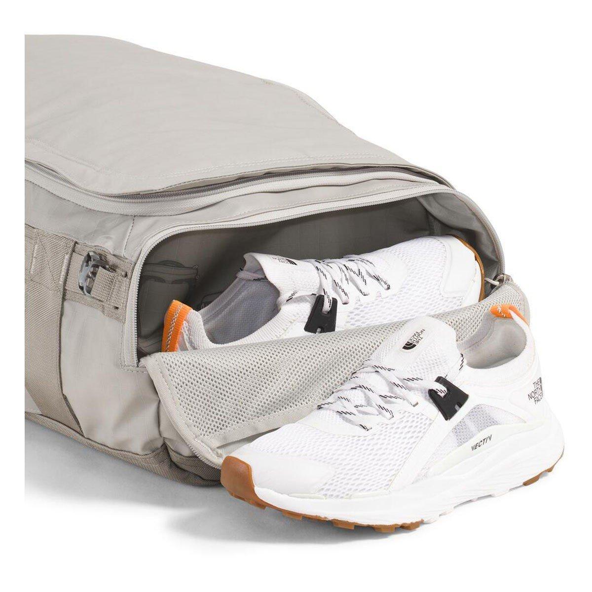 The North Face Base Camp Voyager Duffel Bag is perfect for your next outdoor camping adventure. This Base Camp Voyager duffle bag offers an adjustable divider in the main compartment to position your gear the way you want. Plus, the small external secure-zip pocket holds smaller items that you might need quick access to. An external padded laptop sleeve also can carry up to a 15" laptop while the external water bottle pocket conveniently holds your water bottles on the go. Comfortbaly carry this North Face duffel bag over your shouldeer with the padded shoulder strap or unclip the strap to carry as a duffle bag. Wherever you're headed, outdoors or indoors, The North Face Base Camp Voyager Duffel Bag will securely hold your belongings.