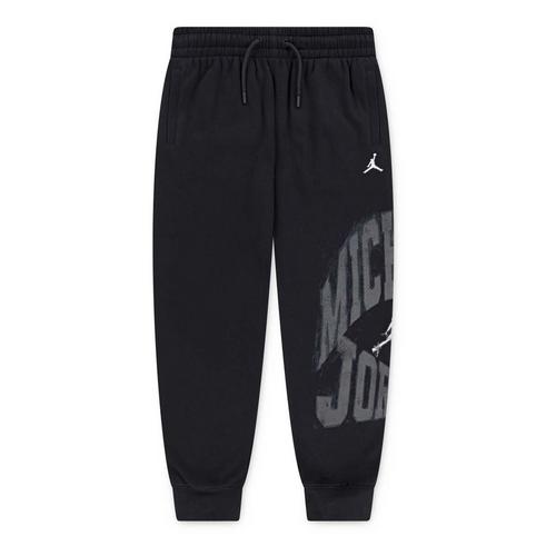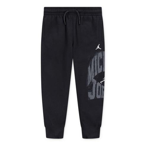 Dress like an MVP in these pants from Jordan, which feature distressed text graphics on the outer left leg. They're made of cotton/poly fleece knit fabric in a classic jogger silhouette with a stretch waistband with drawcord for a comfy fit and tapered legs for a cozy, secure feel. Style with the Jordan Jumpman MVP Fleece Pullover Hoodie for a coordinated look that complements your kicks.