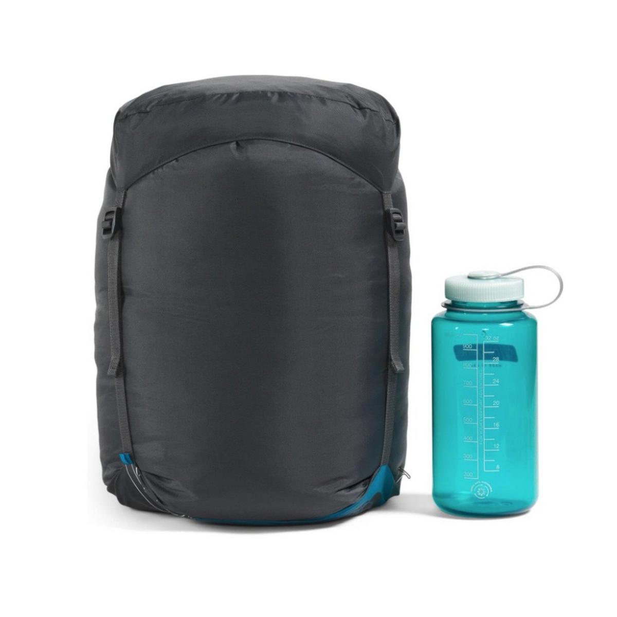 The Cat’s Meow is a versatile 20-degree bag with a water-repellent finish, recycled shell fabric and a fully insulated hood. This practical design includes integrated shock cords that prevent sleeping pads from "wandering" during the night.