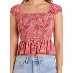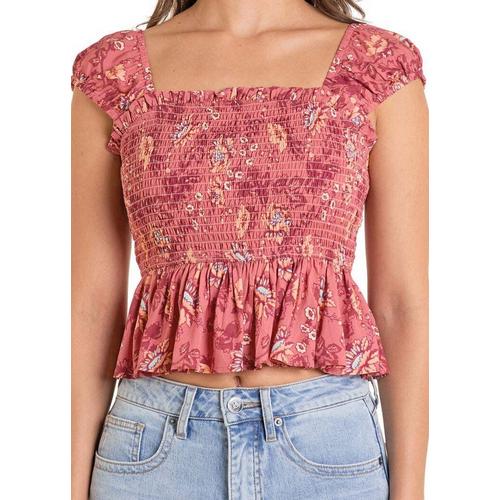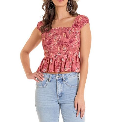 Look flawless and fun in our Smocked Floral Top. Made from 100% rayon, it has a flowy bodice, front and back smocking, and elastic cap sleeves, perfect for adding a touch of style to your wardrobe.