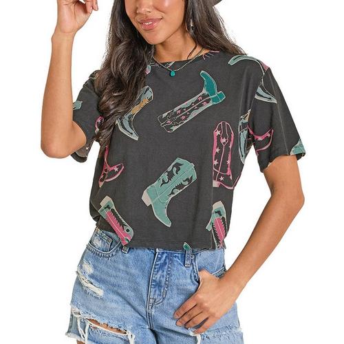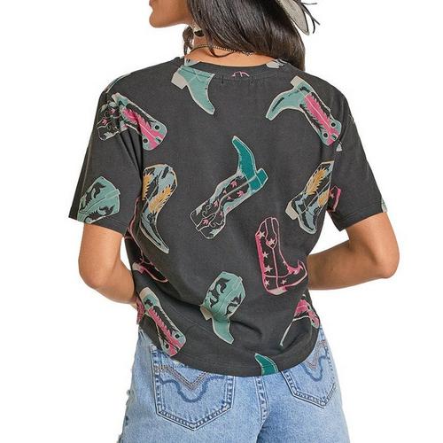 Women's Rock & Roll Denim Boot Print Graphic T-Shirt