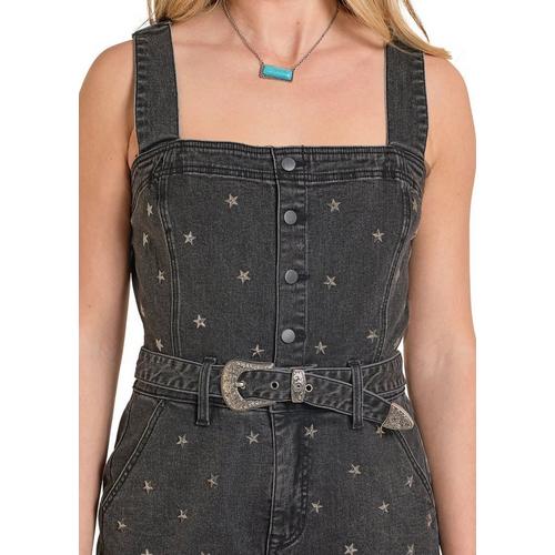 Women's Rock & Roll Denim Black Star Studded Denim Romper