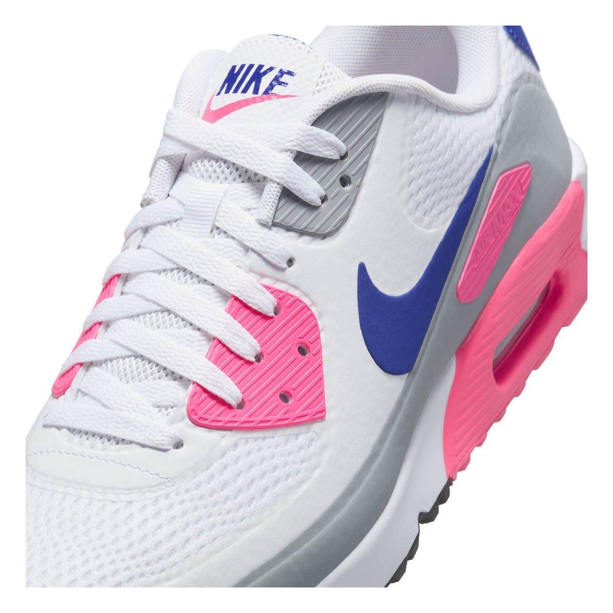 The Nike Air Max 90 G Men's Golf Shoes are inspired by the original Nike Air Max 90 design for style and comfort on the golf course. With a foam midsole and Nike's Max Air unit in the heel, the Nike Air Max 90 G golf shoes offer incredible underfoot cushioning while you're walking the course. The mesh upper has a thin overlay to keep water out yet offer flexibility throughout your swing. Featuring an integrated traction pattern, the Nike Air Max 90 G provide the necessary grip in a variety of different conditions. Check out the Nike Air Max 90 G Men's Golf Shoes for the season ahead.