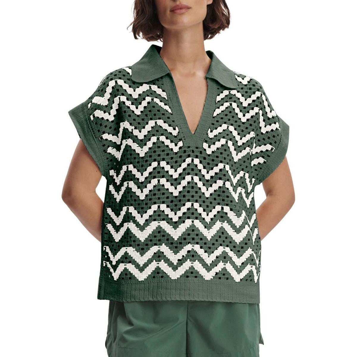 Combine club style with everyday elegance in the Women's Varley Joelle Crochet Polo. This knit top features a comfortable, more relaxed fit. Designed with a sophisticated polo neckline that includes a deep V-neck and a unique machine crochet stitch, it offers a distinct style. Made from 100% cotton, the Varley Joelle Crochet Polo is a stylish option for versatile wear.