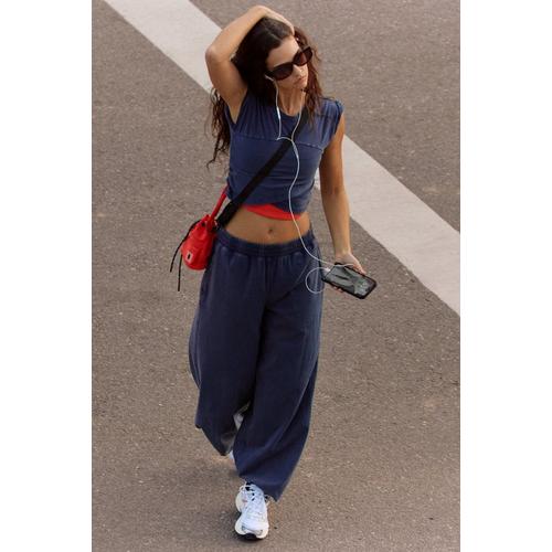 Discover effortless comfort and versatile style with the Women's FP Movement Hot Shot Crossover Set, perfect for throwing on before or after your workouts. This super soft set offers a perfectly lived-in look, designed for all-day ease. The relaxed-fit includes a cropped muscle tee with a unique crossover detail and high-rise, ankle-length pants with a wide leg. Complete with an elasticated waistband and cuffs, plus convenient side seam pockets, this set transitions seamlessly with your active lifestyle.
