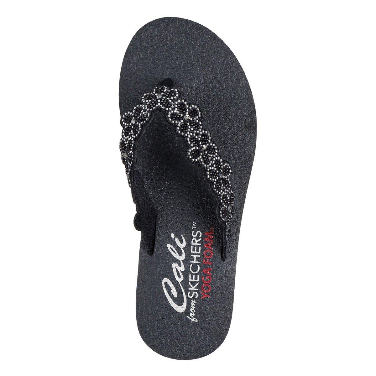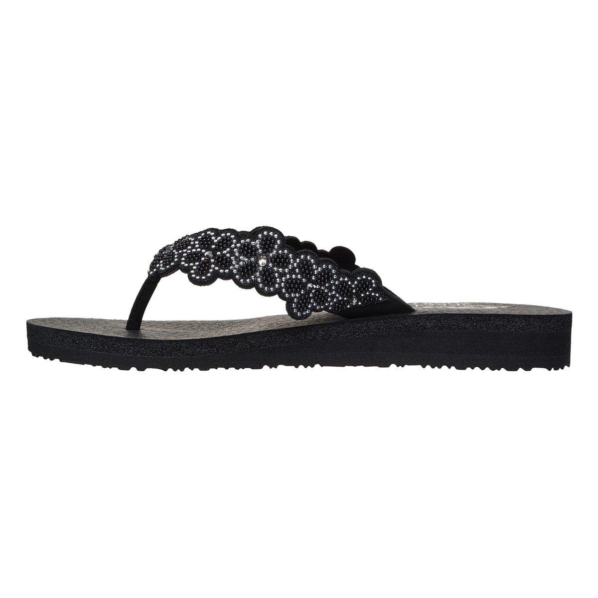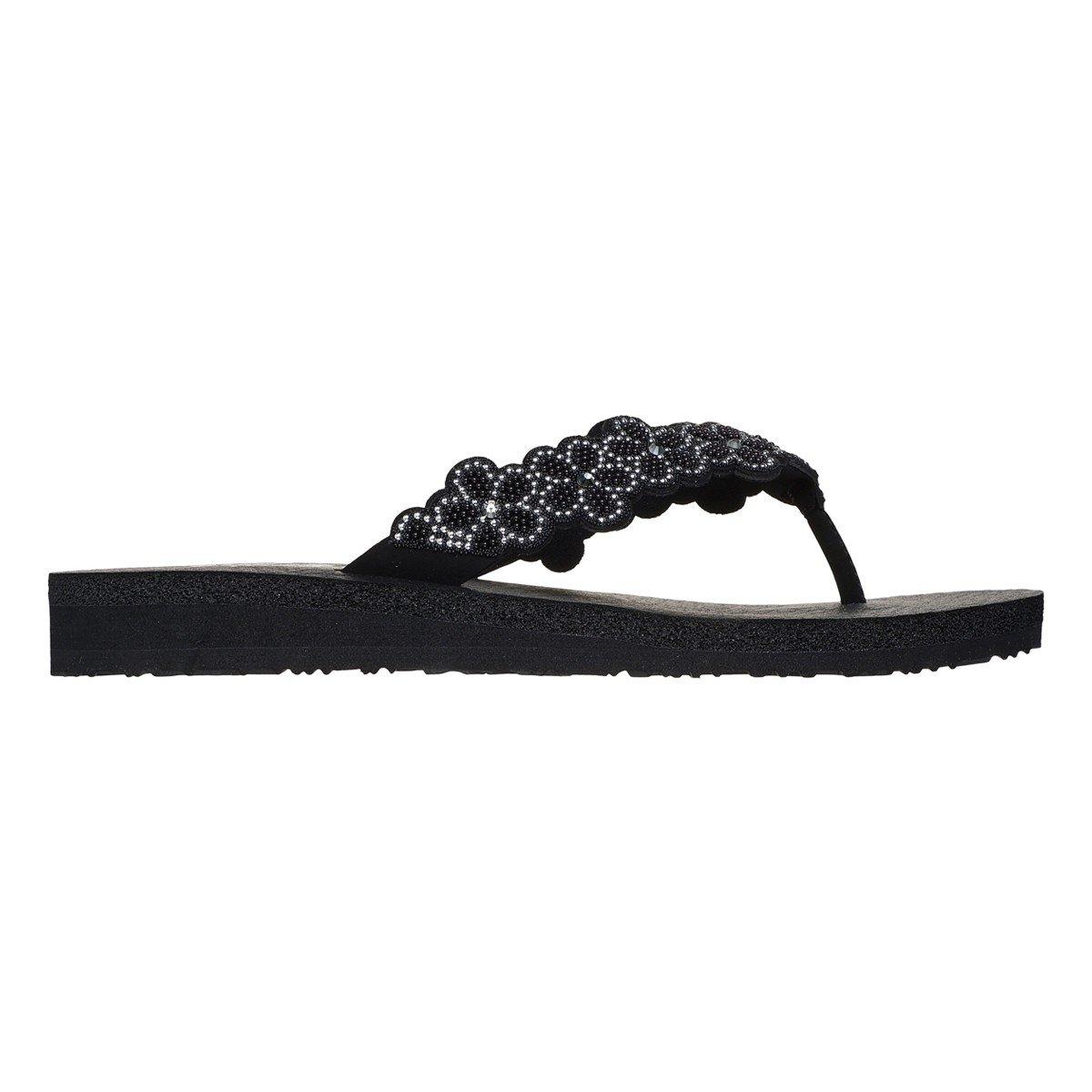 Add a little glam and comfort to your look with Skechers Meditation. This vegan thong sandal features a synthetic upper with floral faux pearl embellishments and a cushioned Yoga Foam® footbed.