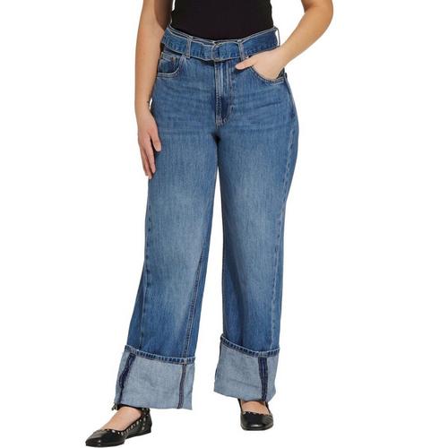 Features: Zip fly and button closure, five-pocket design, adjustable self belt, authentic rigid denim, cuffed hemlines
