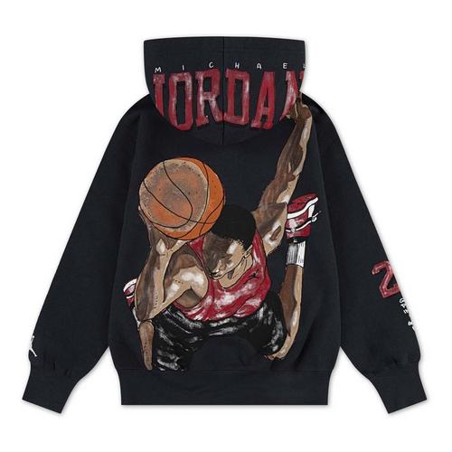 The Kids' Jordan Sketch Hoodie is a comfortable layer for running errands or lounging around the house. Made with soft, durable material, this Jordan sweatshirt will feel soft next to your skin, while the ribbed wrist cuffs and hem offer a better overall fit. Plus, the logo and graphics helps display your brand loyalty to Jordan. Stay comfortable in the Kids' Jordan Sketch Hoodie on chilly days.