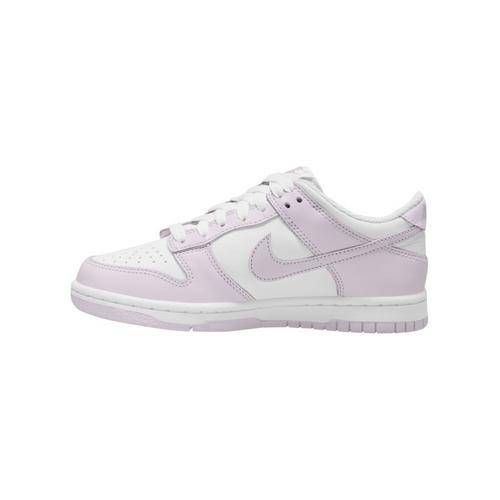 The Big Kids' Nike Dunk Low Sneakers bring a timeless look with modern comfort and durability. Featuring a real and synthetic leather upper, these sneakers offer a classic yet sturdy feel for everyday wear. The cupsole construction and rubber outsole provide durable traction, while the padded collar and tongue ensure all-day comfort. Perforations on the toe area enhance breathability and stay true to the original Dunk design. Complete with classic laces, the Nike Dunk Low Sneakers deliver a secure fit and a stylish, retro-inspired vibe.